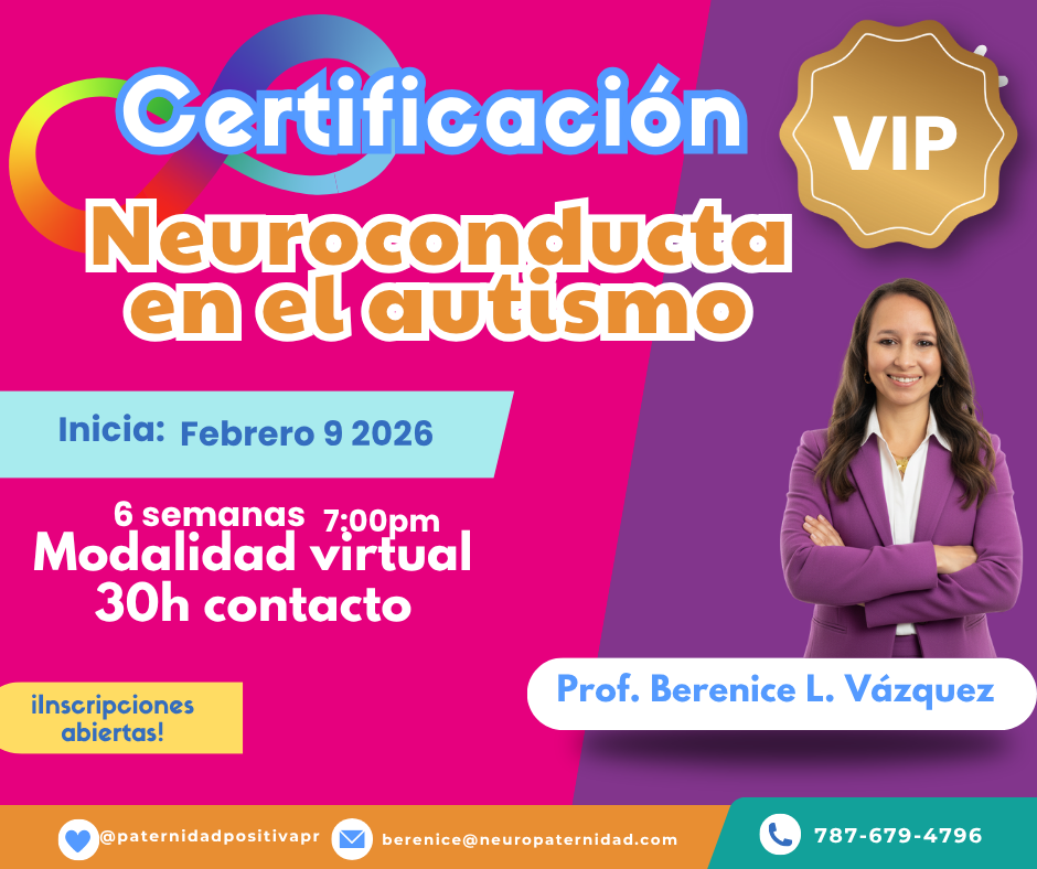Desde hace más de 12 años me dedico a capacitar, brindar mentoría y consultoría a profesionales y familias con niños neurodivergentes, especialmente dentro del espectro del autismo. Soy autora de seis libros sobre neurodiversidad, conducta y crianza, creadora de las plataformas Neuropaternidad Positiva LLC y Neuroparentología, y profesora del Certificado Profesional en Autismo, Problemas específicos del aprendizaje de Re-Aprender Corp. Creadora y profesora de la Certificación profesional Neuroconducta en el autismo 30H contactos.